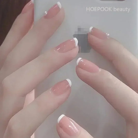 24pcs French Nude Seamless Removable Fake Nails Capsule Full Cover Artificial Press On False Nails Art Women Nail Art Decoration