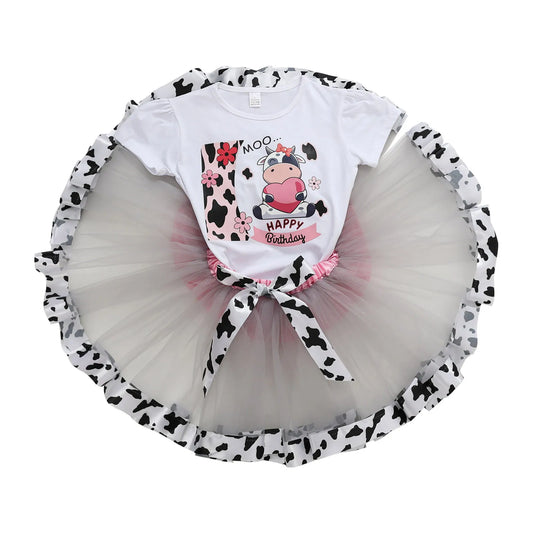 2-8Y Kids Girls Clothes Sets Girls Short Sleeved Letter Print T-shirt Top+Mesh Tutu Skirt Birthday Party Dance Performance Suits