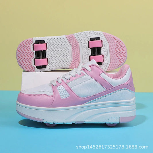 2024 New Roller Skate Shoes Boys Girls Casual Running Sneakers Adult Skates Kids Outdoor Sports Dual-Use Roller Skate Shoes