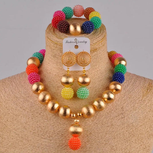 New Fashion African Handmade Beaded Peach Nigeria Wedding Jewelry Set Imitation Pearl Female Necklace Earring Bracelet XX-30