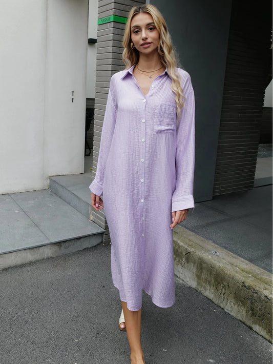 New Design 2024 Women Summer Long sleeve Basic Shirt Maxi Long dress