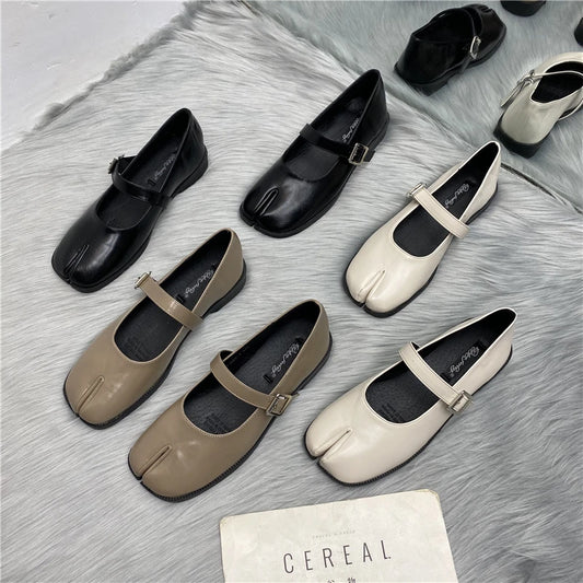 Tabi Ninja Moccasins Round Split Toe Retro Color Women Single Shoes Buckle Strap 2024 Spring Casual Soft Mary Janes Shoes