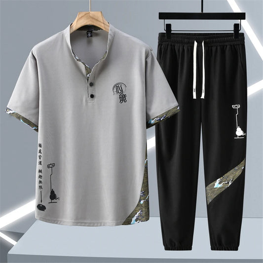 Tracksuits Plus Size 12XL Men's Sets Fashion Casual Chinese Traditional Style T-shirts Pants Suits Male Sets Big Size