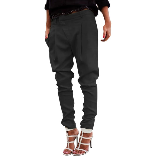 Women Chic Fashion Office Wear Harem Pencil Pants 2023 New Elastic Waist Button Female Casual Trousers Streetwear