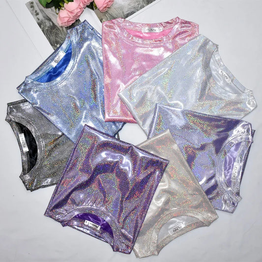 Women Bright T-shirt Silk Shiny Flash Short Sleeve Female Tide Big Shirts Student Thin Glitter Reflective Fashion Lady Clothes