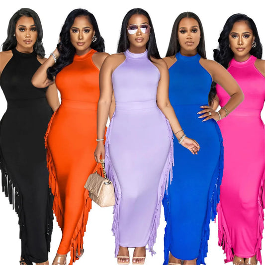 Wmstar Party Dress Sets Women Sexy Sleeveless Tassel Bodycon Stretch Maxi Skirts New In Matching Suit Wholesale Dropshipping