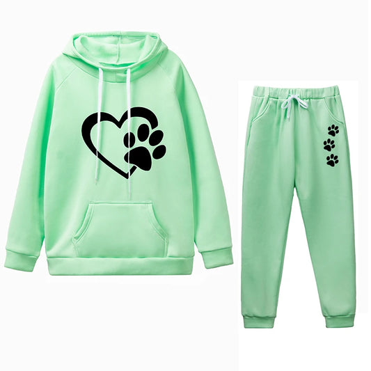 Women Hoodies Two Piece Sets Autumn Winte Cartoon Printed Sweatshirt+Sports Pants Tracksuit Femme Running Hoodie and Jogger Set