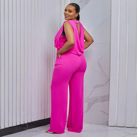 Women's Clothing Backless Sleeveless Jumpsuits Pants Overall Loose Wide Leg High Waist Full Length Pants