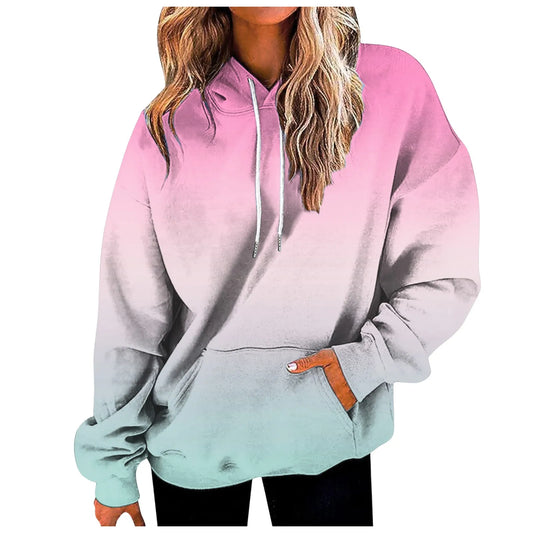 Women's Gradient Color Casual Hoodies Long Sleeve Oversized Sweatshirts Loose Fitted Drop-Shoulder Hooded Pullover худи женский