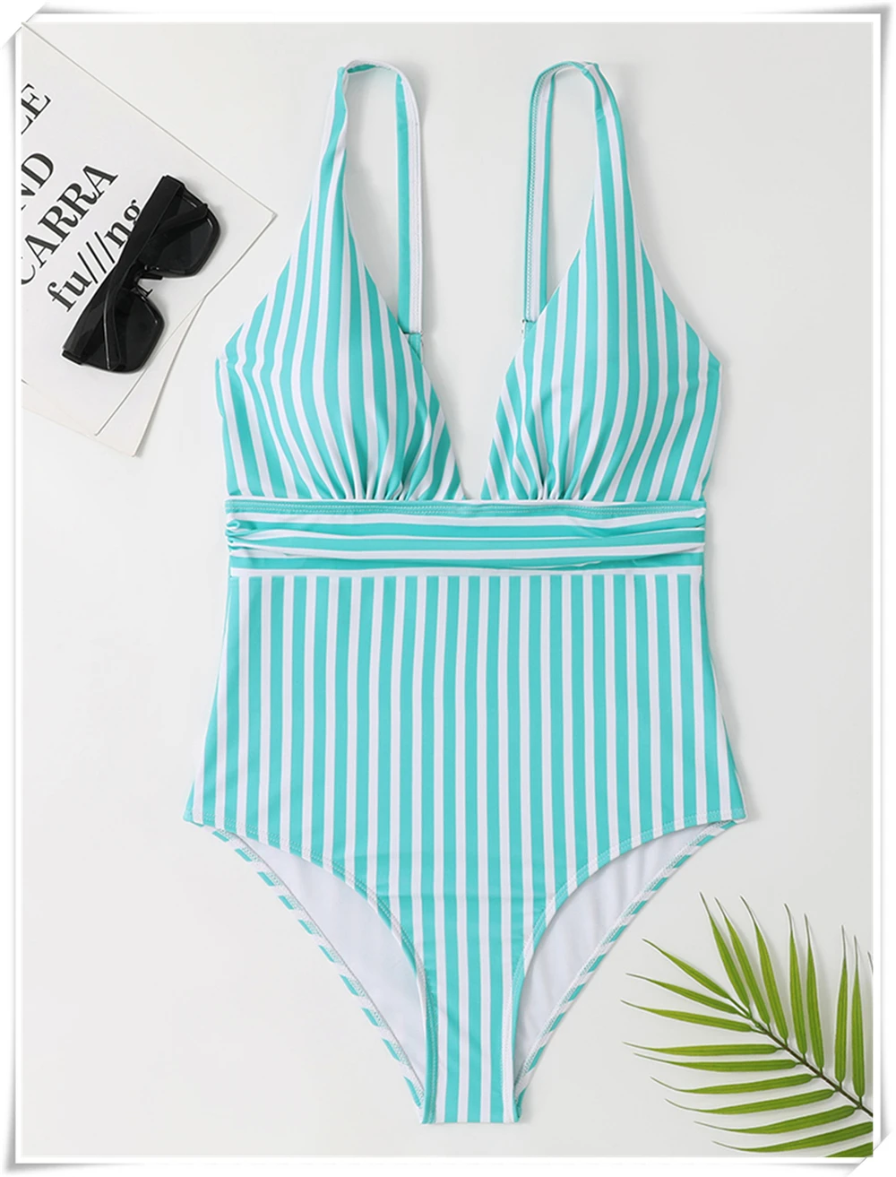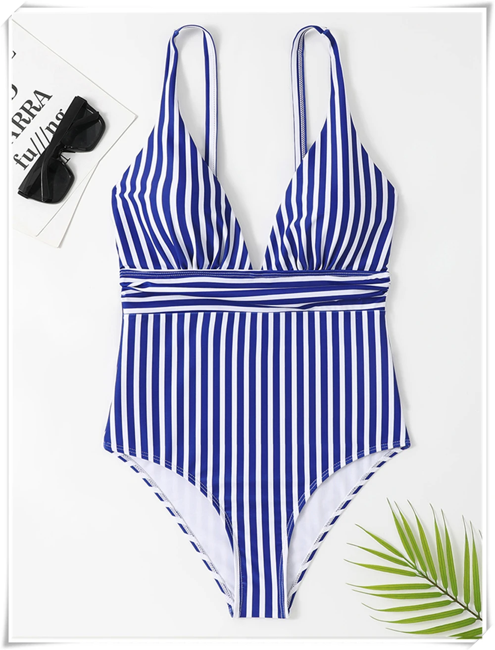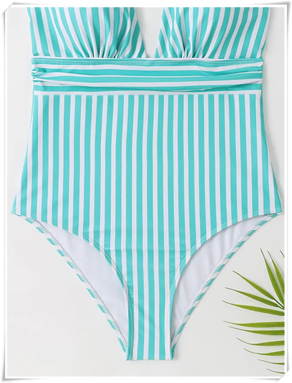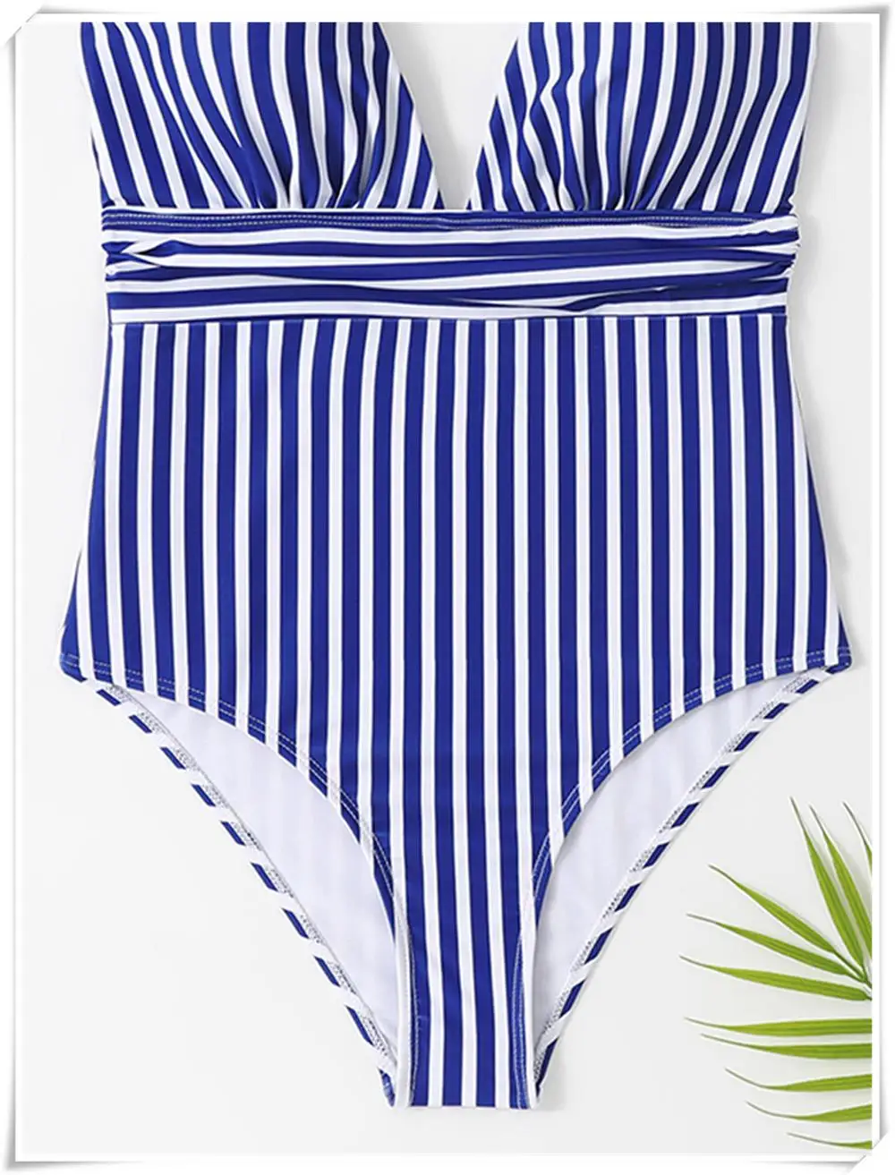 Model Number: 2023 Striped V-neck One Piece Swimsuit Vintage Padded Swimwear