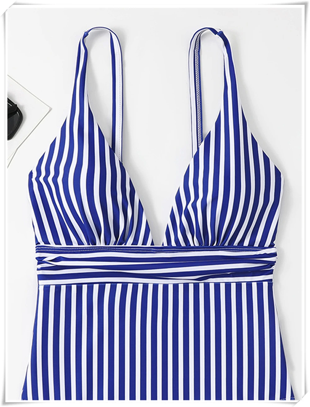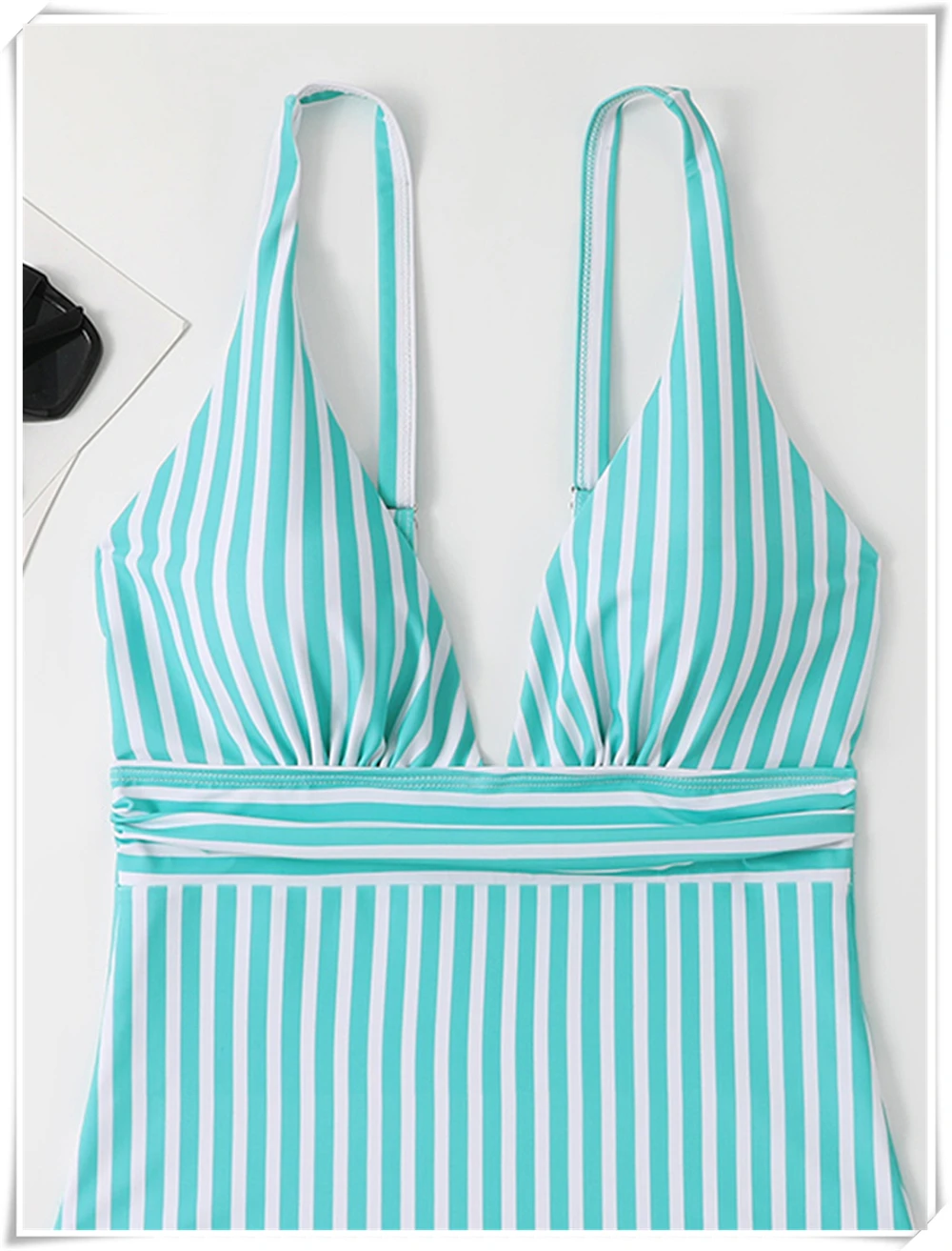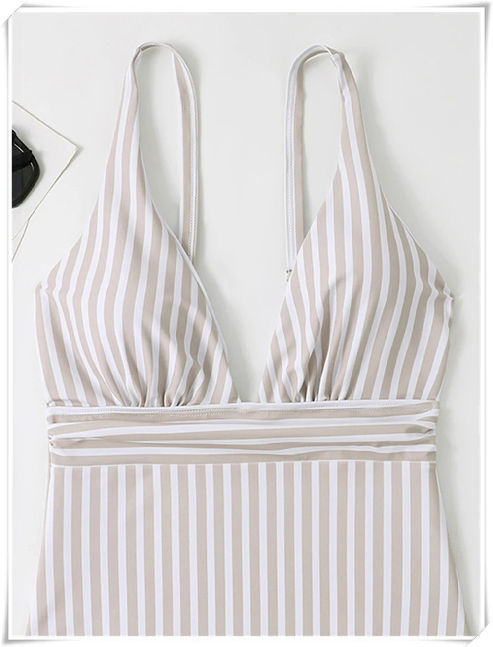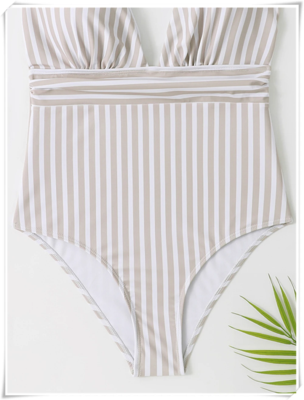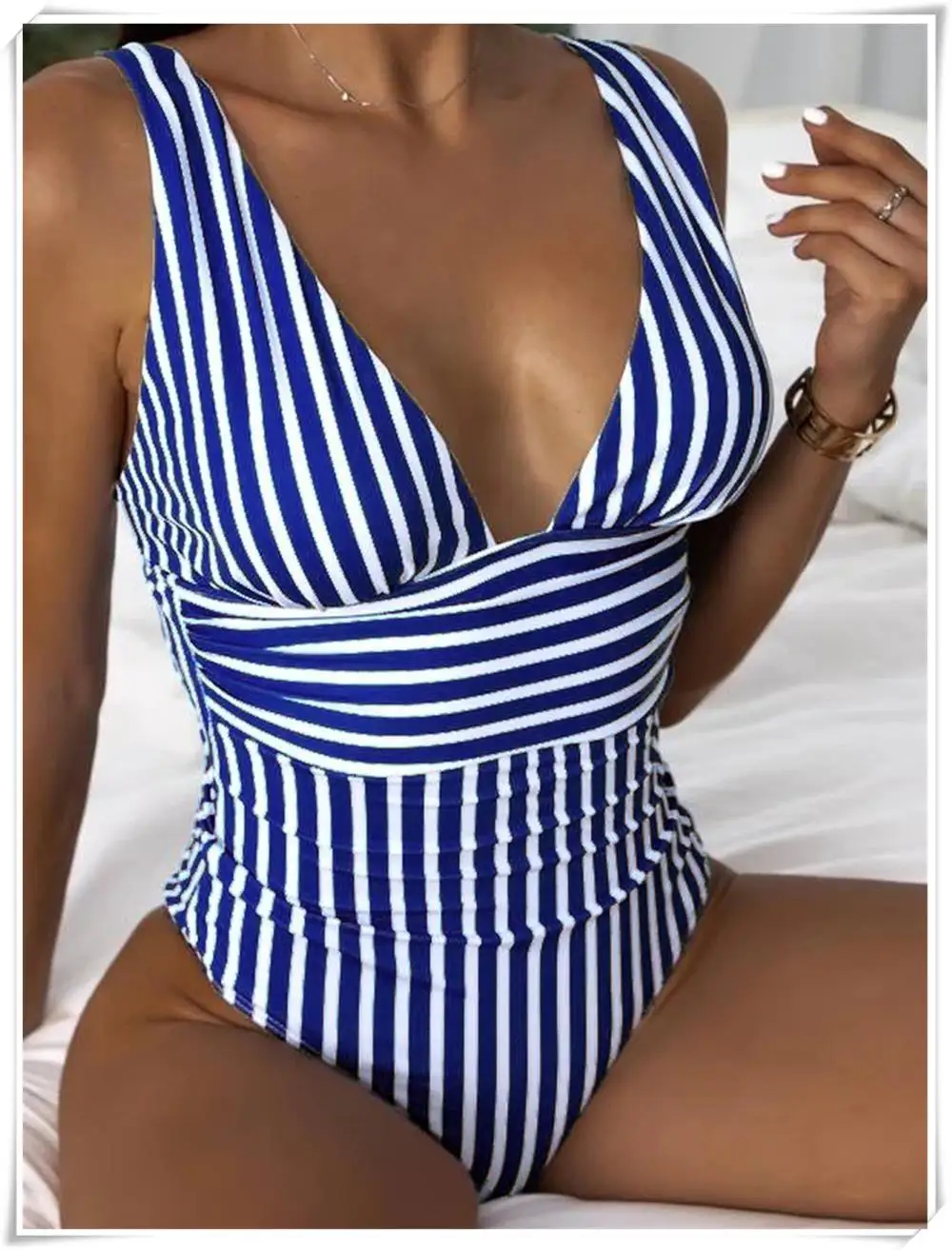 Model Number: 2023 Striped V-neck One Piece Swimsuit Vintage Padded Swimwear