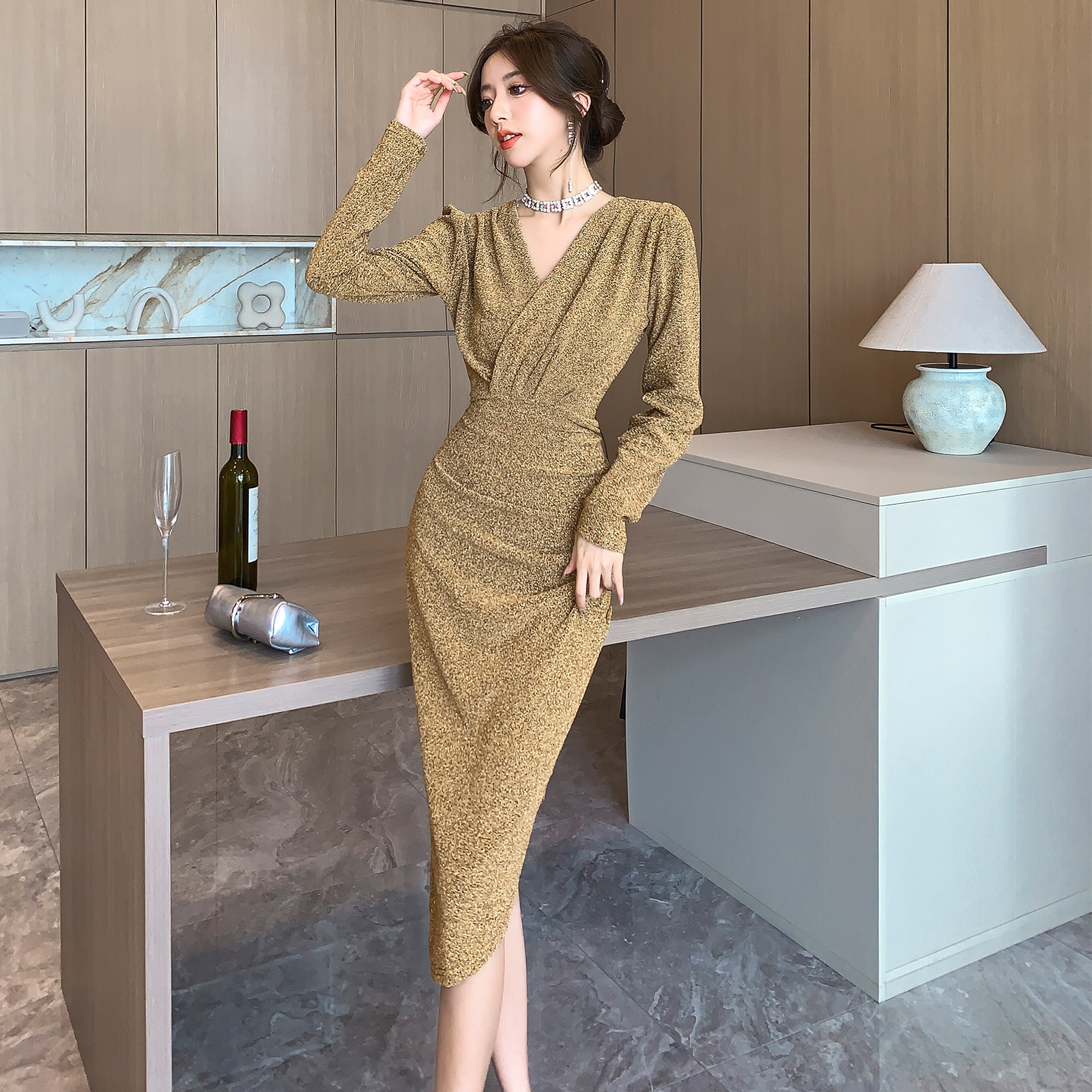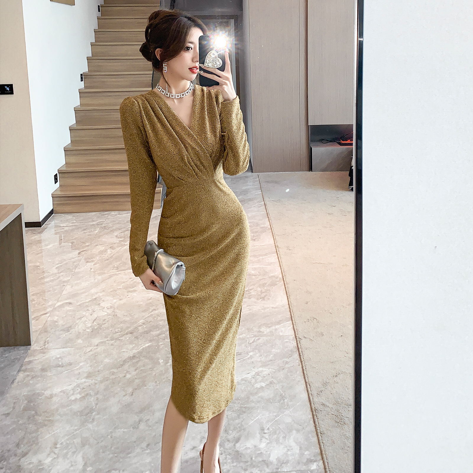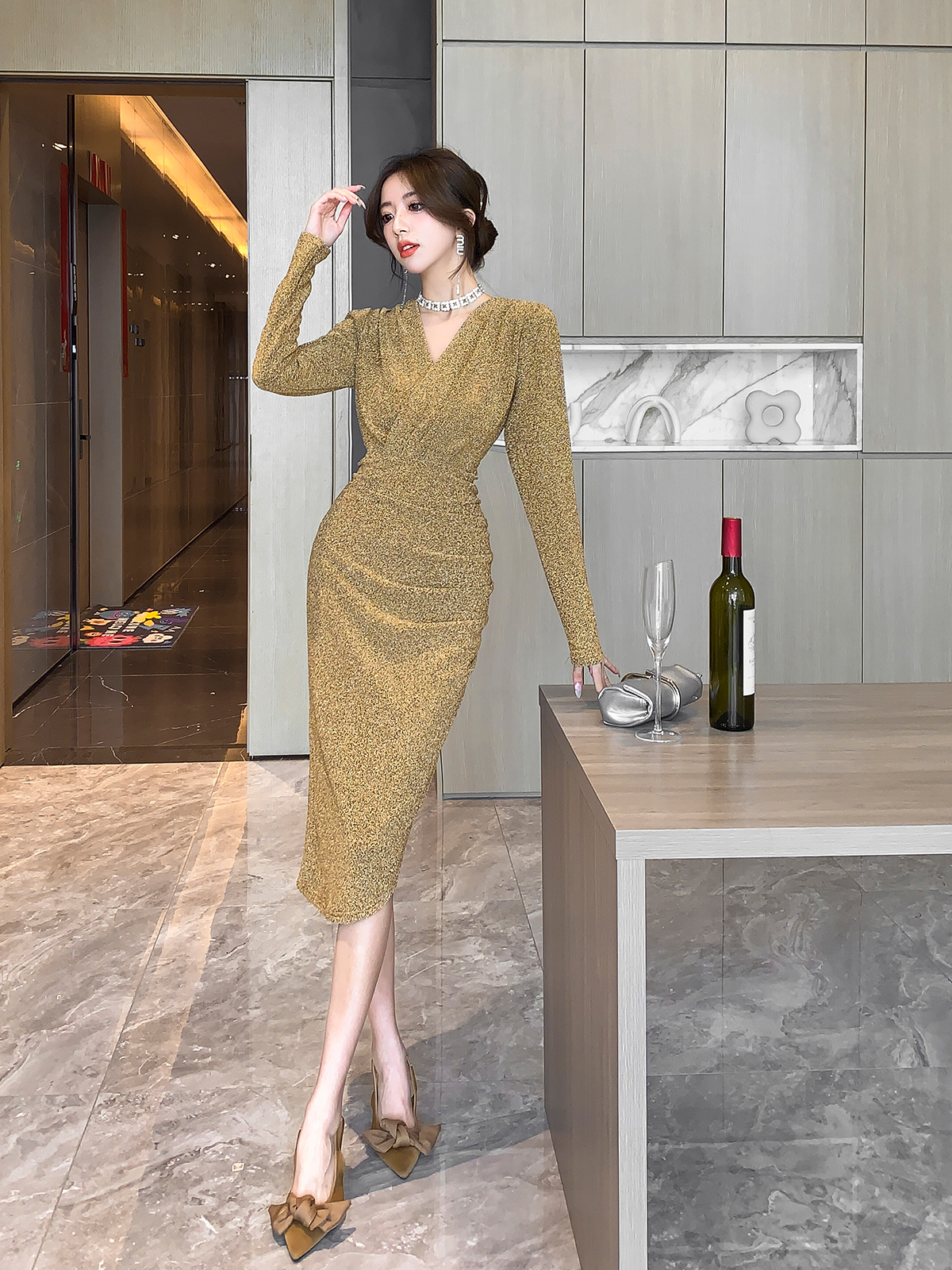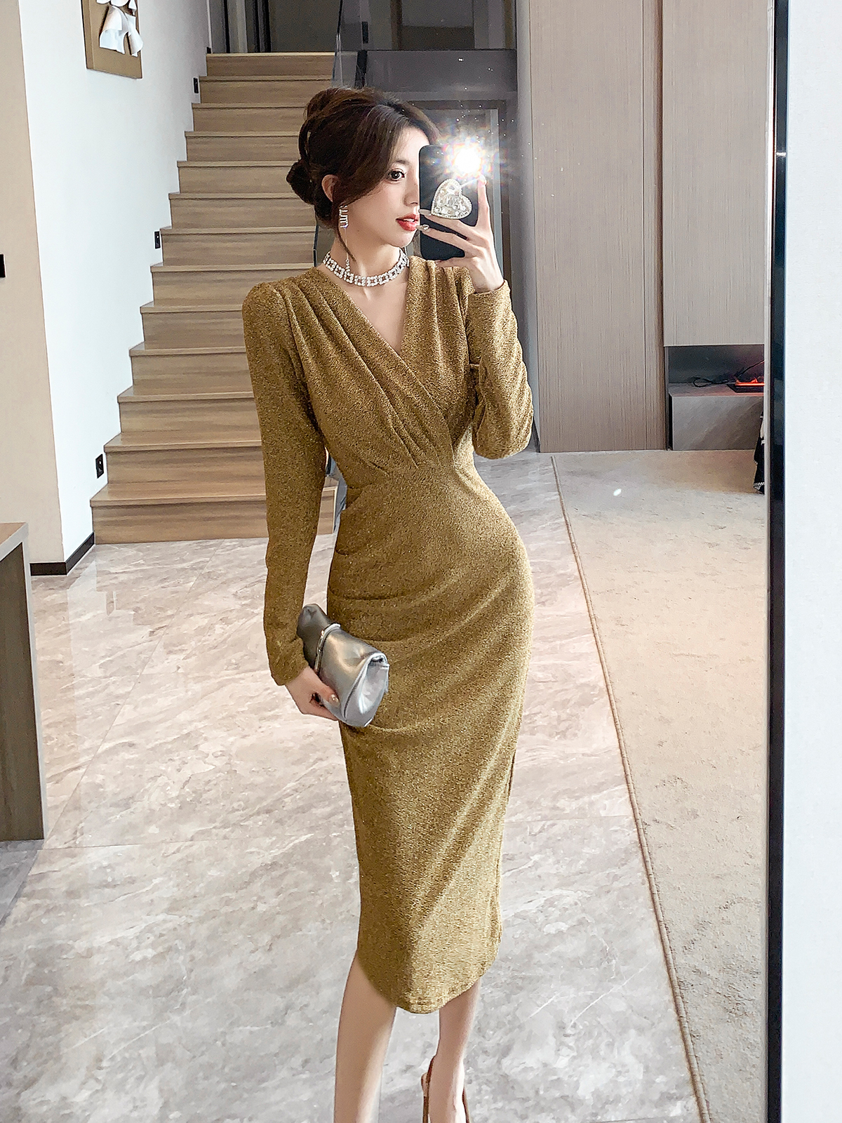 Accessible Luxury Socialite Pure Desire Sexy V-neck Dress Dress