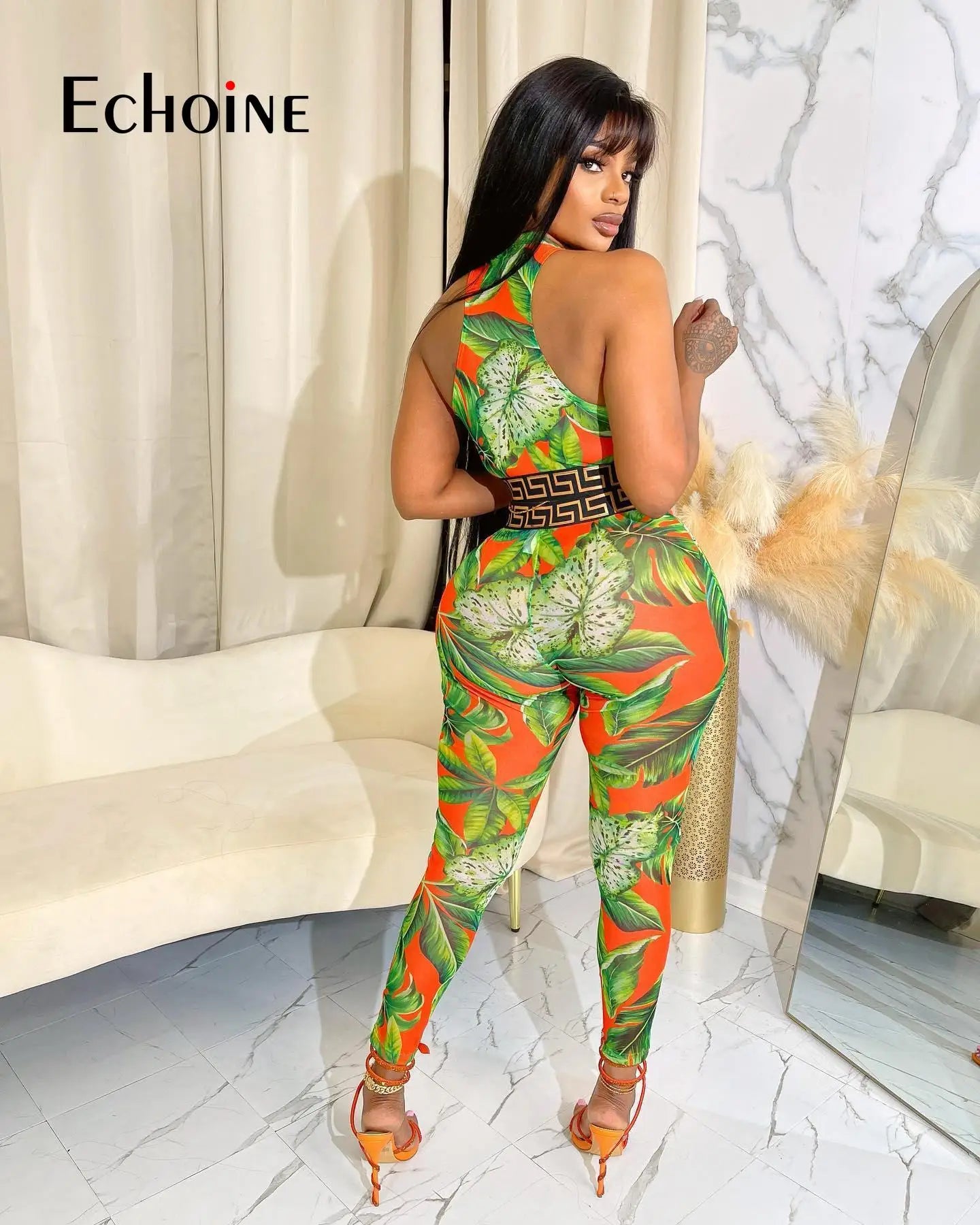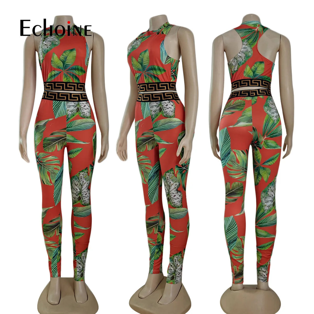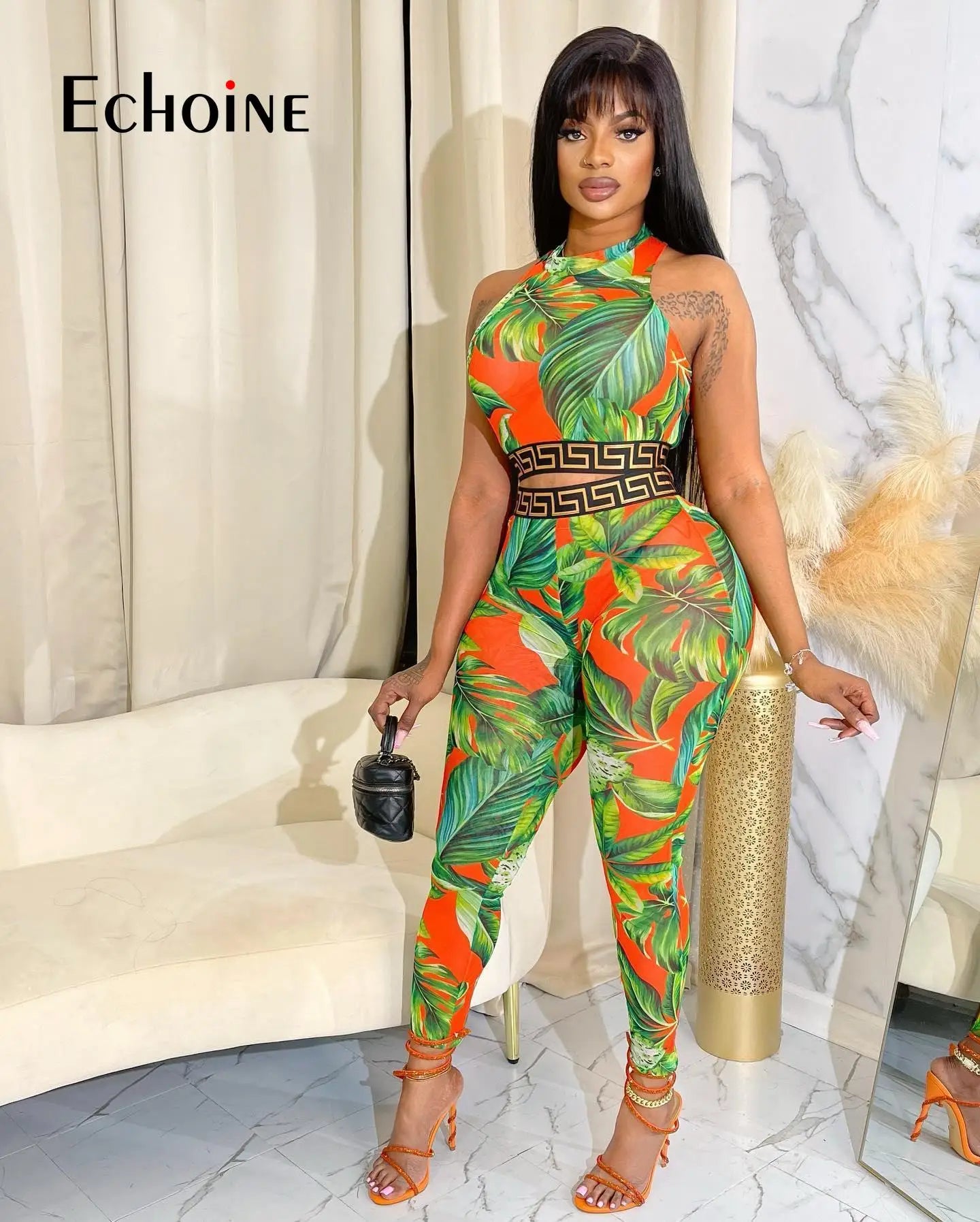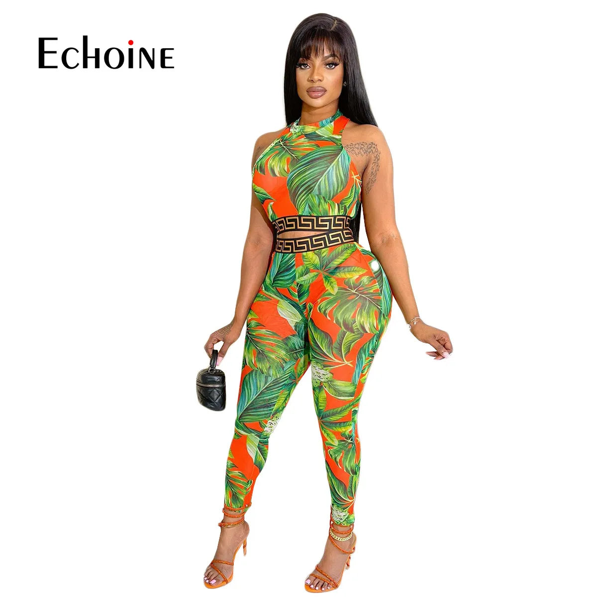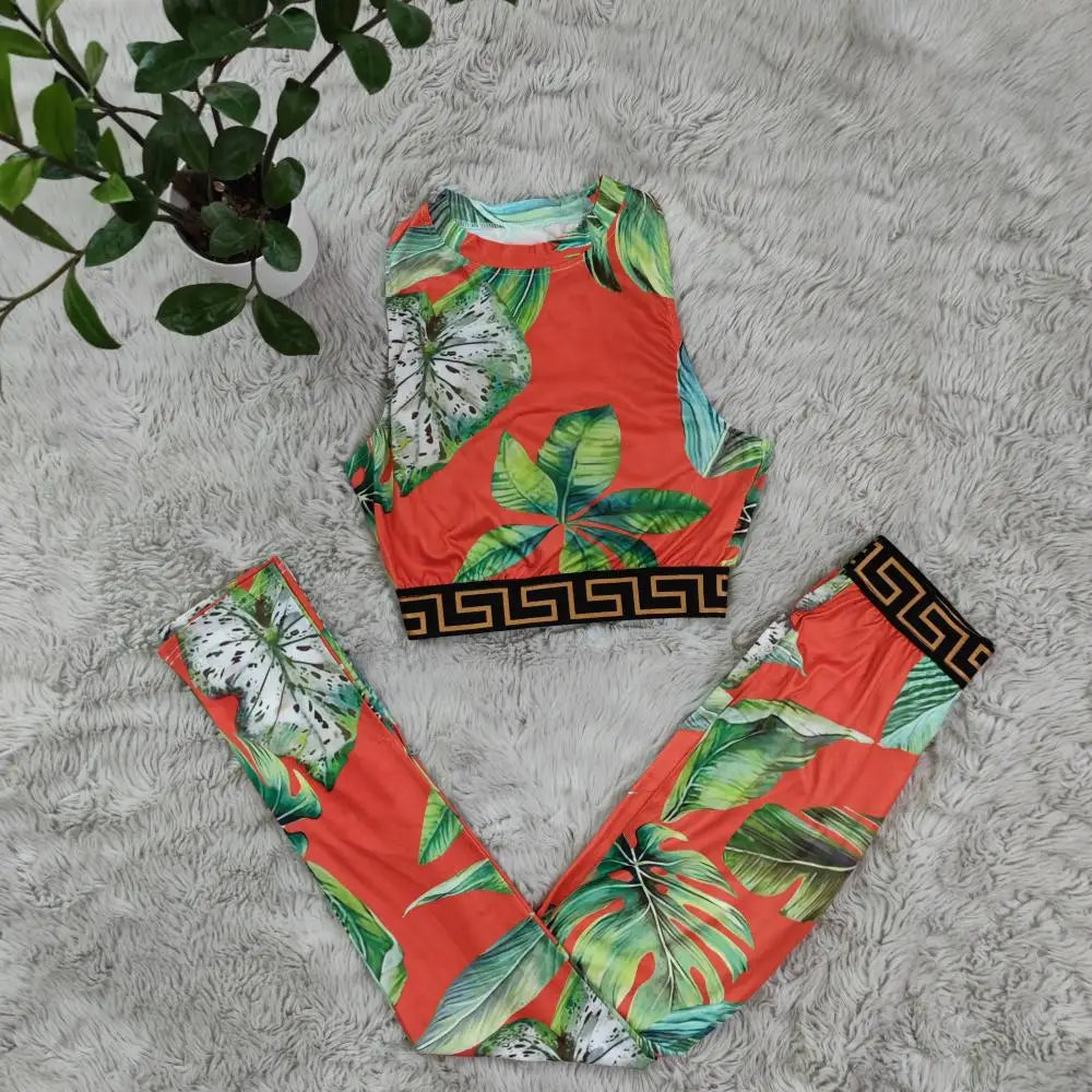 Echoine Women Print Patchwork Sleeveless Tank Crop Tops And Leggings 2 Two Piece Set 2023 Summer Sexy Fashion Tracksuit Outfits