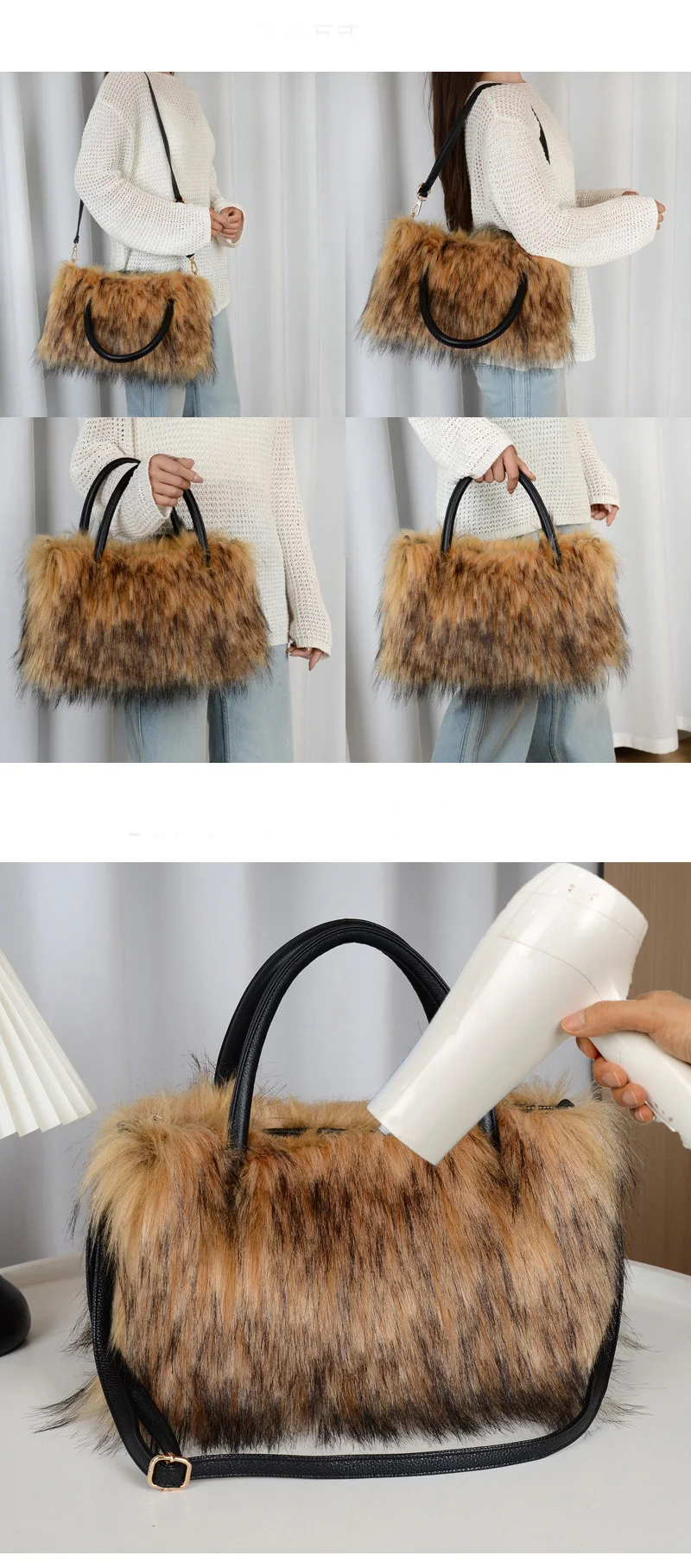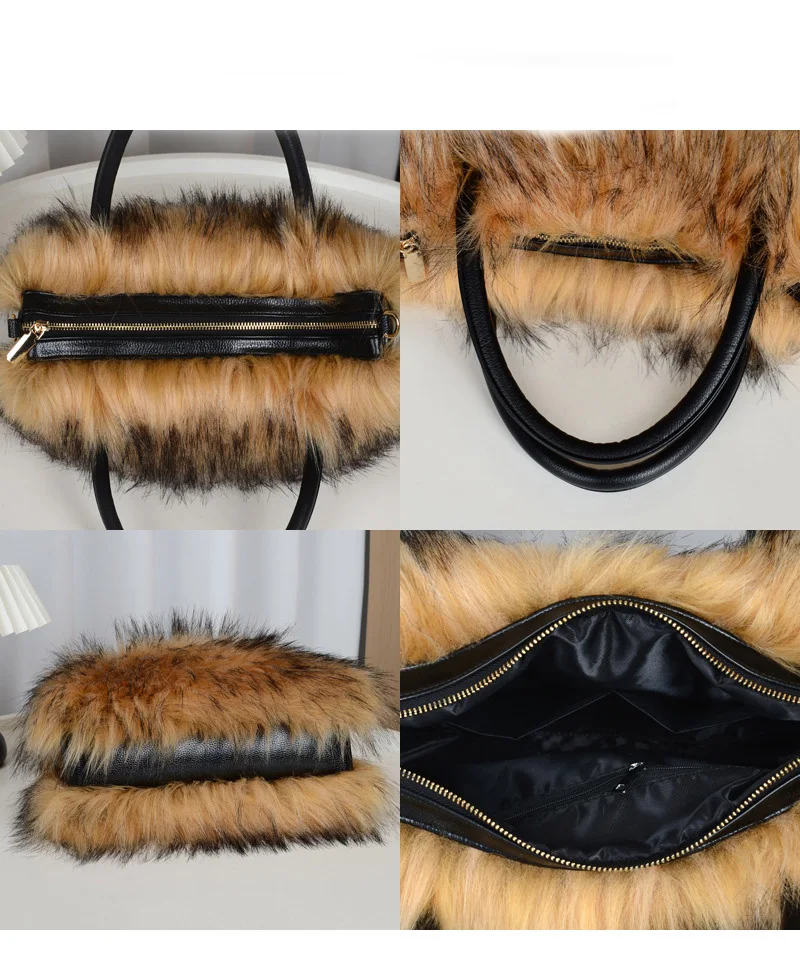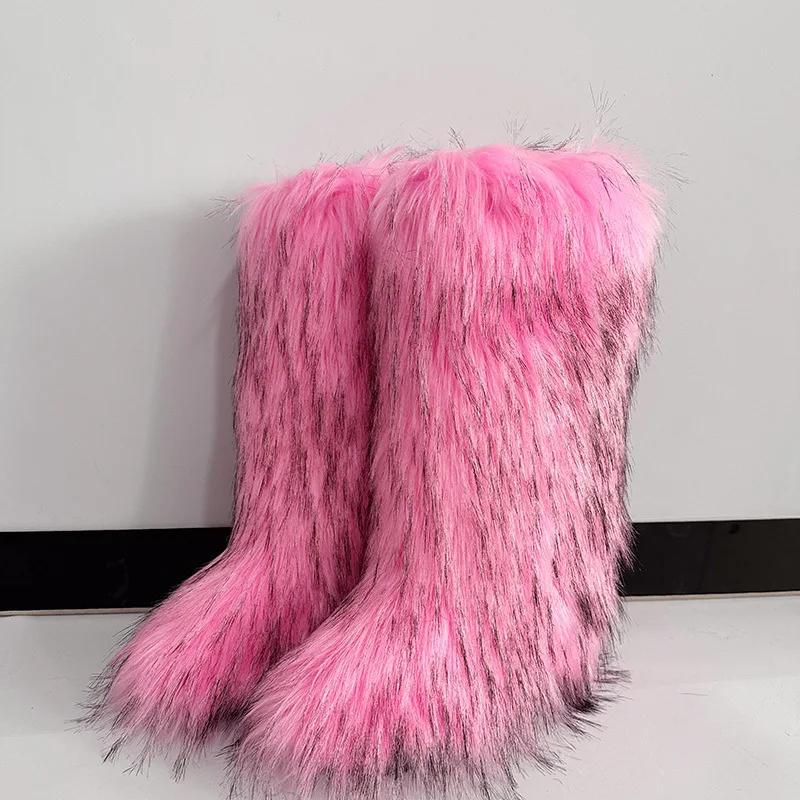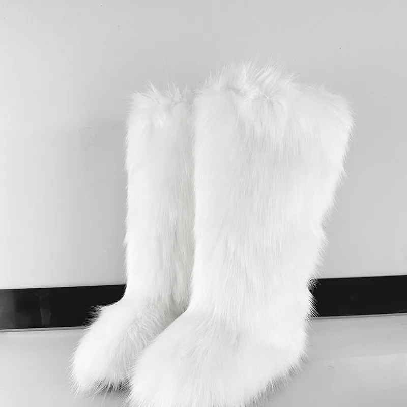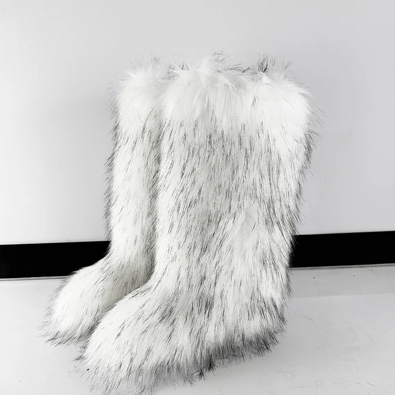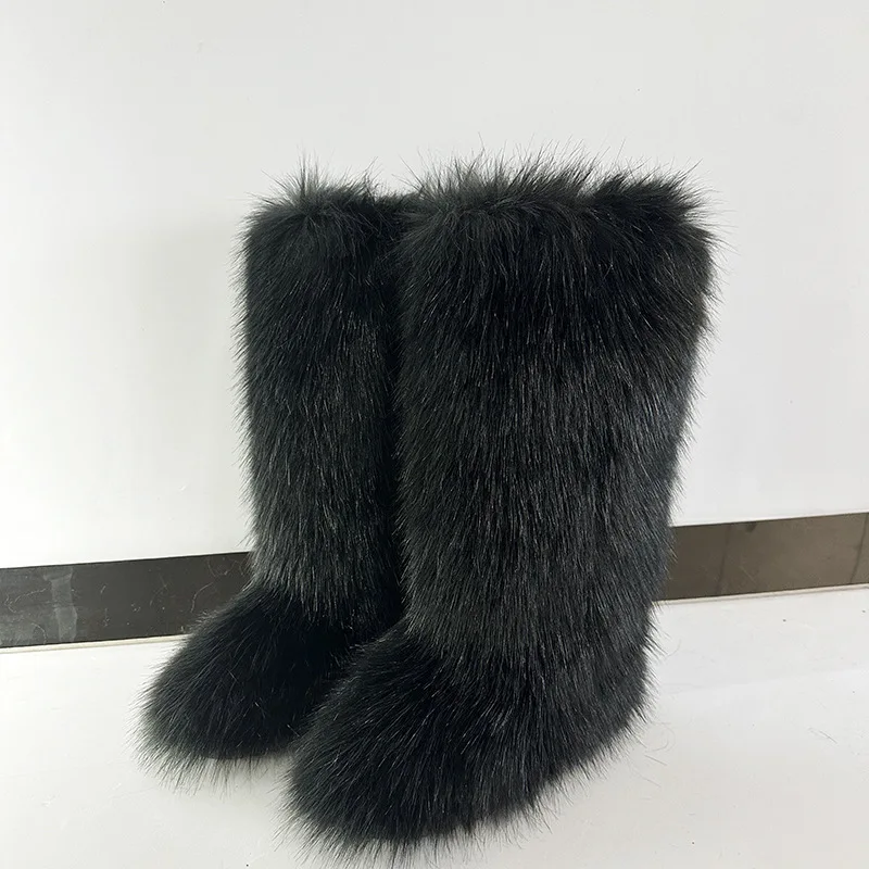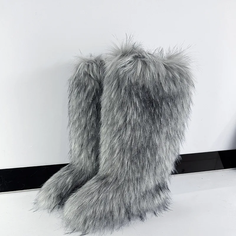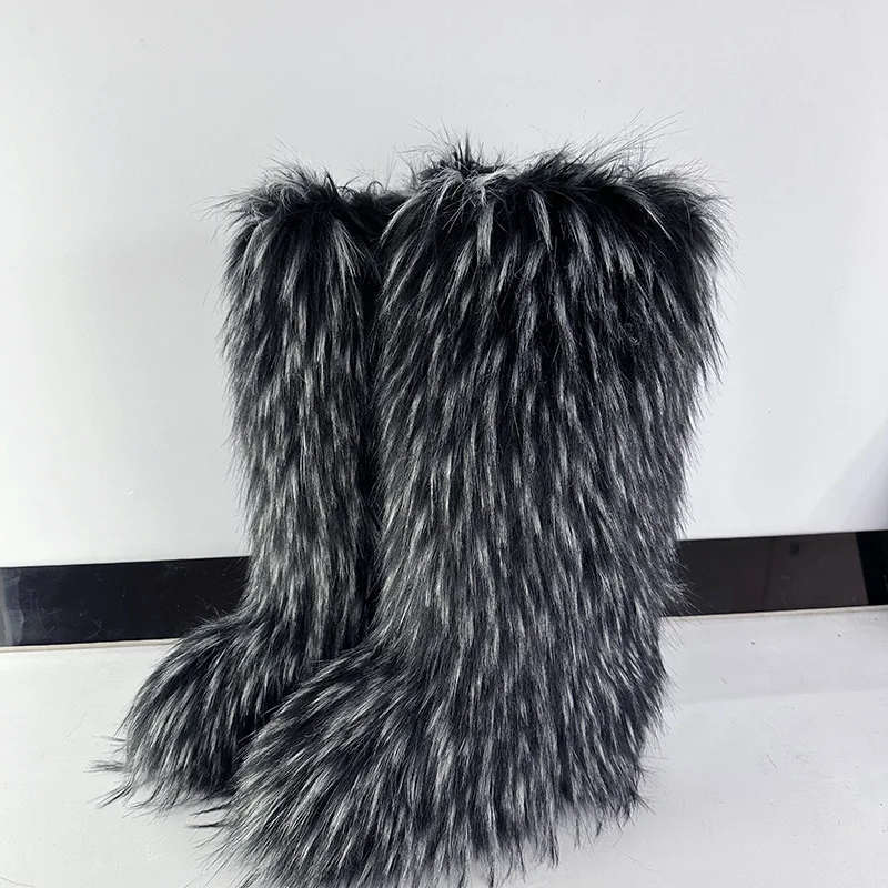 Women's Winter Knee High Faux Fur Raccoon Fur Snow Boots plus Size Plush Handbag Set Fashionable Over-the-Knee Slip-On Boots